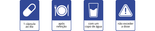 Ingerir 1 cápsula ao dia, de preferência junto à refeição principal (café da manhã ou almoço), com um copo de água. Não exceder a dosagem recomendada.