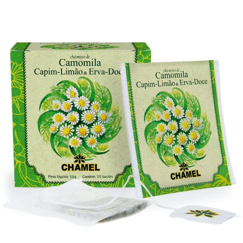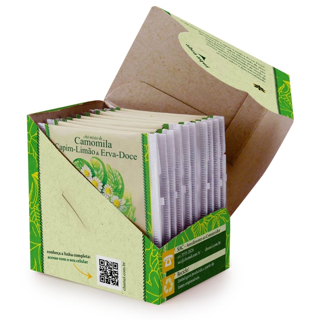Chá misto de Camomila com Capim Limão e Erva Doce em sachês