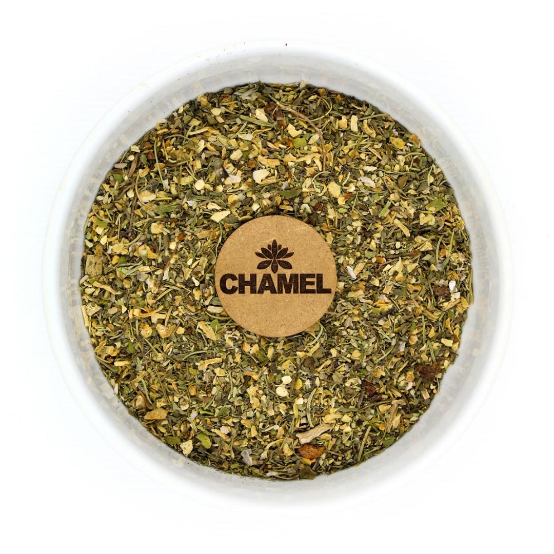 O tempero Chimichurri é resultado de uma combinação equilibrada de ingredientes aromáticos e saborosos. O alho e a cebola oferecem intensidade e profundidade, enquanto a cebola branca traz um toque mais adocicado e suave. O colorau adiciona um leve dulçor, contrastando com o sabor terroso e marcante do cominho. Já o manjericão e a salsa garantem frescor e notas herbais que equilibram a mistura.