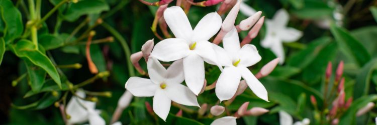 O jasmim é uma trepadeira perene da família Oleaceae, conhecida por suas flores brancas muito perfumadas. Originário da Ásia, cresce bem em climas temperados e ensolarados, podendo atingir vários metros de altura.
