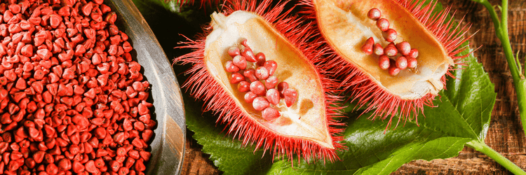 O urucum pertence à família Bixaceae e é conhecido por suas sementes de coloração intensa, que variam entre tons de vermelho e alaranjado. Trata-se de um arbusto ou pequena árvore, com frutos em forma de cápsulas espinhosas que abrigam as sementes.