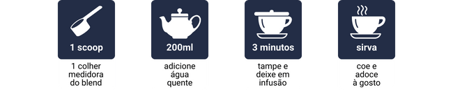 Coloque 1 scoop do chá em uma xícara ou bule, adicione 200 ml de água quente, tampe e deixe em infusão por 3 minutos. Depois, coe e adoce a gosto. Aproveite cada gole e permita-se uma pausa relaxante e saborosa.