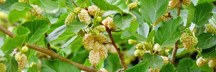 A amora branca, cientificamente conhecida como Morus alba L., é uma árvore de médio porte da família Moraceae, nativa da China. Suas folhas são amplamente reconhecidas como a principal alimentação do bicho-da-seda (Bombyx mori), sendo fundamentais na sericicultura.