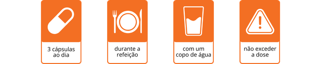 Ingerir 3 cápsulas ao dia, de preferência junto a uma das refeições, com um copo de água.