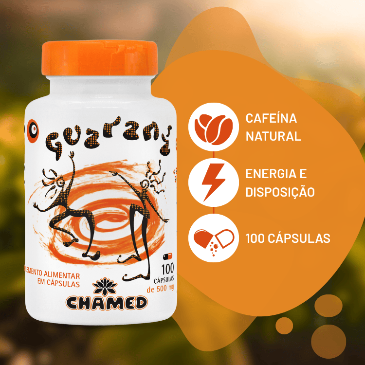 O Guaraná Chamel é um suplemento em cápsulas elaborado a partir das sementes do guaraná, uma planta conhecida por conter naturalmente cafeína.