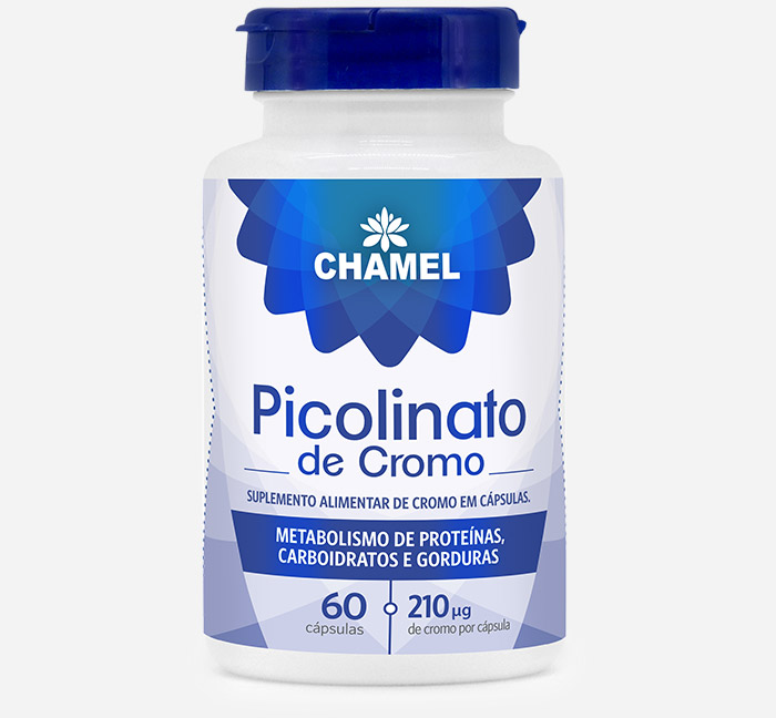 O Picolinato de Cromo Chamel é um suplemento mineral que auxilia no metabolismo de proteínas, carboidratos e gorduras.