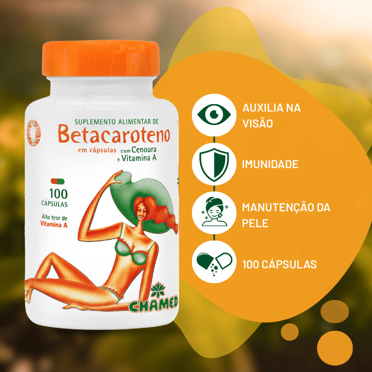 O betacaroteno é um pigmento natural encontrado em diversos vegetais, especialmente nos de coloração alaranjada e avermelhada. A cenoura é uma das fontes mais conhecidas desse composto, sendo amplamente cultivada e utilizada na alimentação ao redor do mundo. Por meio da tecnologia aplicada pela Chamel, o betacaroteno foi incorporado à formulação como ingrediente fonte de vitamina A, oferecendo uma alternativa para quem busca uma rotina mais natural, sem abrir mão da praticidade da suplementação em cápsulas.