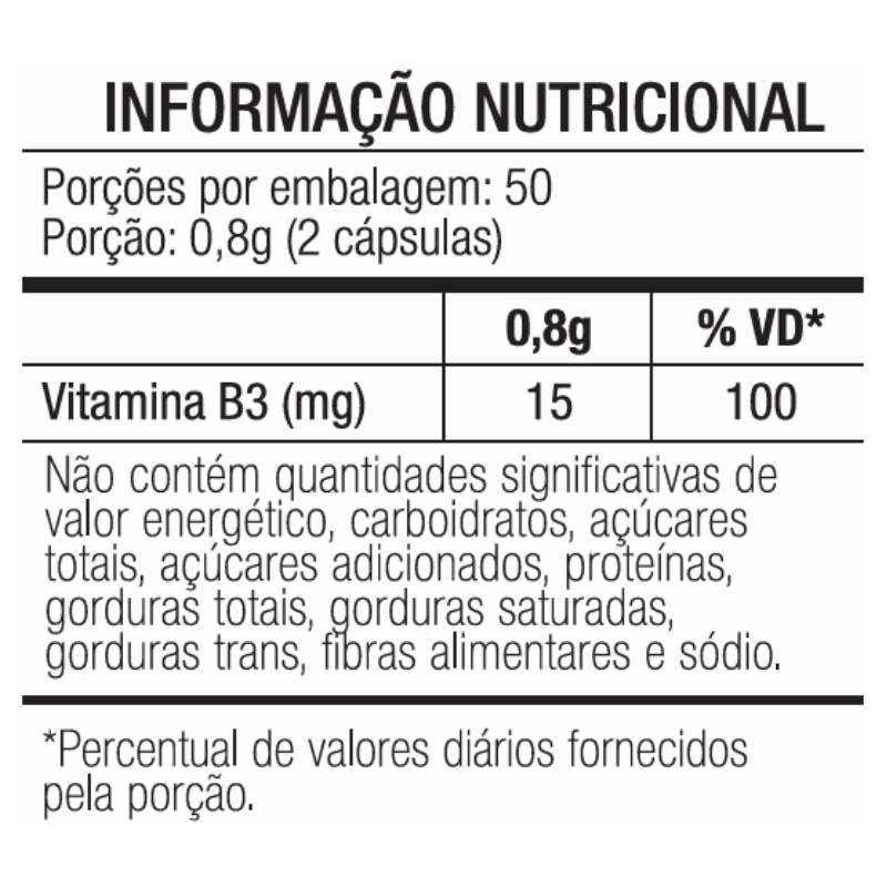 Nome do produto: Suplemento Alimentar de Vitamina B3 em Cápsulas
